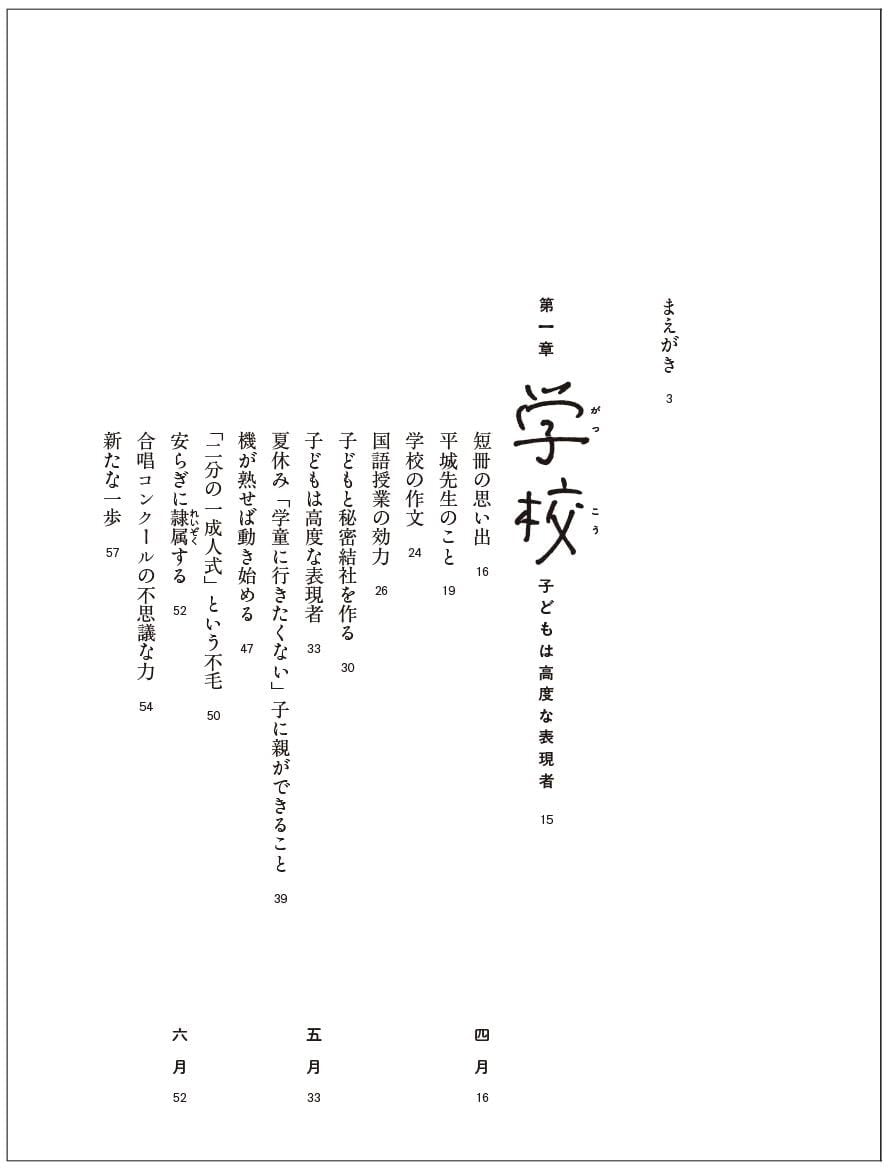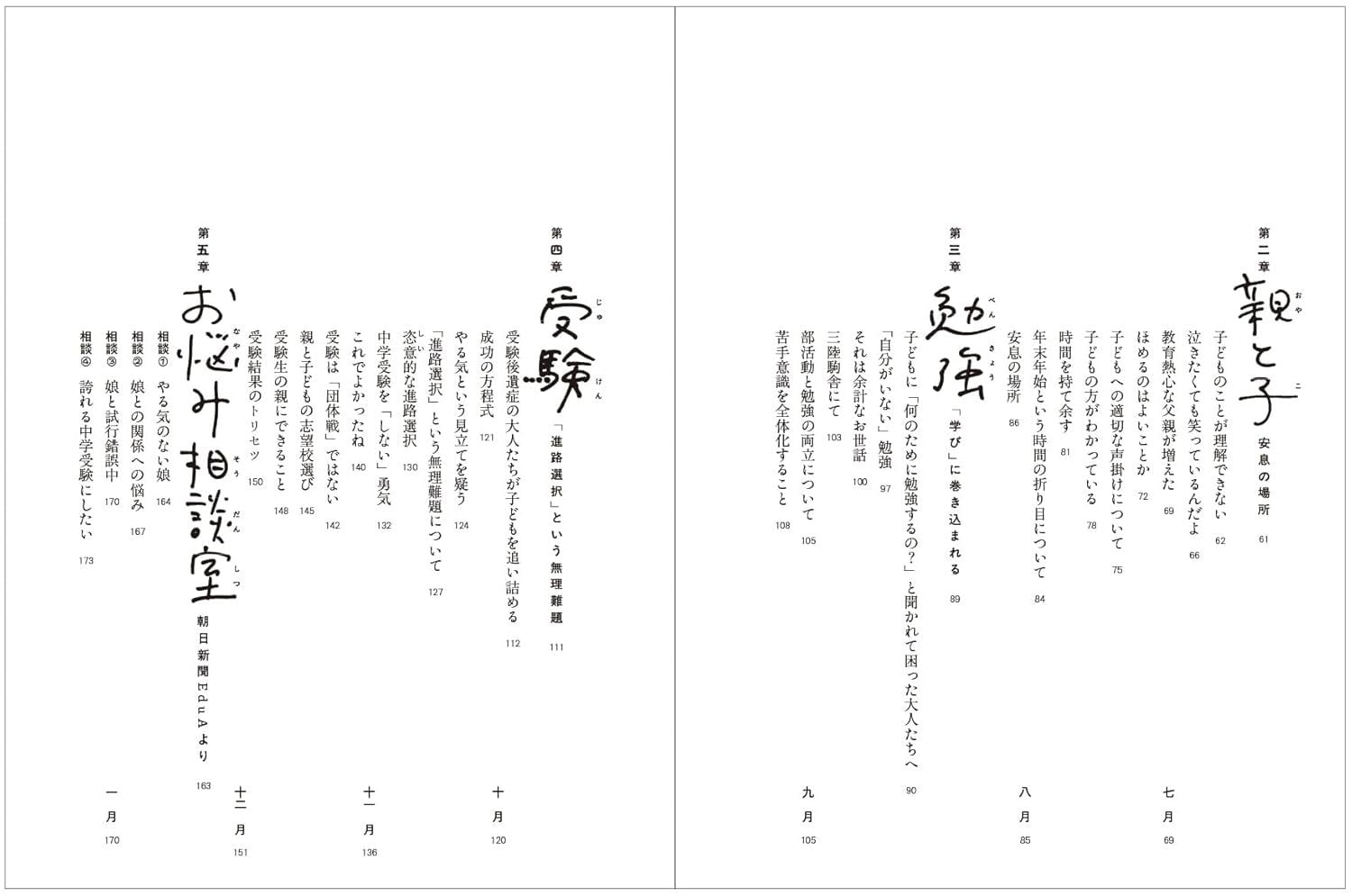 「失敗させまい」「傷つけまい」という大人の"先回り"が、実は子どもの可能性を閉ざしてしまう──。本書では「学校」「親と子」「勉強」「受験」といったテーマを軸に、現代教育の盲点と私たち大人が抱える不安の影を浮かび上がらせます。単なる批判にとどまらず、大人の葛藤や弱さへの眼差しがこめられているからこそ、その言葉は深く胸に響きます。